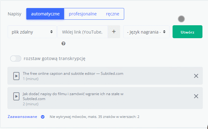 Tworzenie napisów nie było nigdy tak proste, dzięki opcji automatycznego rozstawienia gotowej transkrypcji.