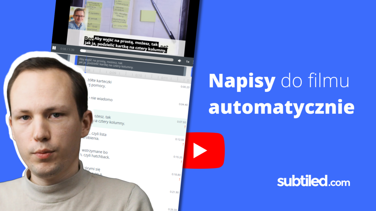 Czy masz gotowy filmik na Facebooka, YouTube’a i chcesz dodać do niego napisy? W tym artykule przedstawimy sposób na to, jak automatycznie stworzyć napisy do Twojego filmu za pomocą aplikacji Subtiled.com. Generowane przez nią napisy wymagają jedynie niewielkiej korekty, co pozwoli Ci zaoszczędzić wiele godzin żmudnej pracy.