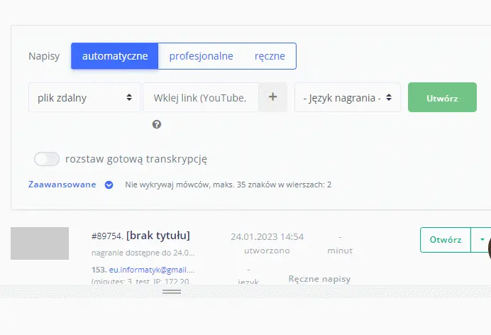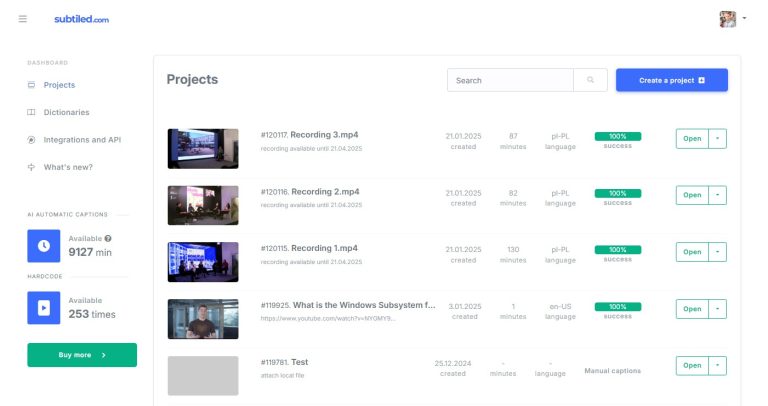 • NEW When creating a project for manual subtitles, automatic completion of information about the recording (title, photo, length).