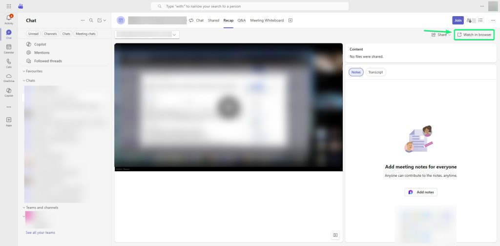 Po zakończonym spotkaniu Microsoft Teams zapisuje nagranie w SharePoint.