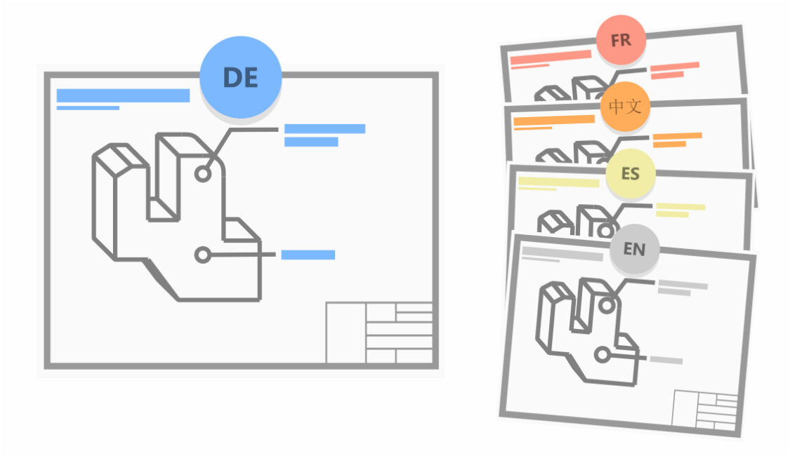 W CorelDesigner możesz opracowywać grafiki wraz z opisami i w prosty sposób przesyłać je bezpośrednio do tłumaczenia.