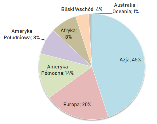 Internauci według regionów (Źródło: Globalne Statystyki Cyfrowe 2014, do stycznia 2014).